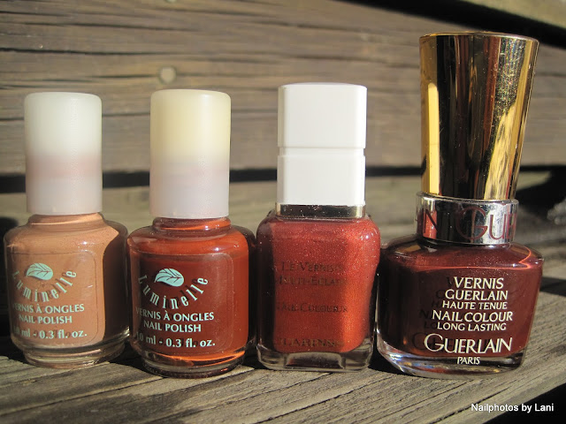 I remember that I used to have a few more than this, and I probably threw them away. But if I ever find them, I'll update this post. I promise. I wish someone had told me when I was a child that polish lasts forever. I hope I'll find the nail polish my mother gave me, that I was allowed to play with, some time. It was a green frost in a mini bottle. So I don't have my first polish here. Some of these polishes I've kind of inherited, some are gifts, and some I've bought myself. The oldest bottle I have is about 30 years old, and the youngest of these are about 5- 10 years.